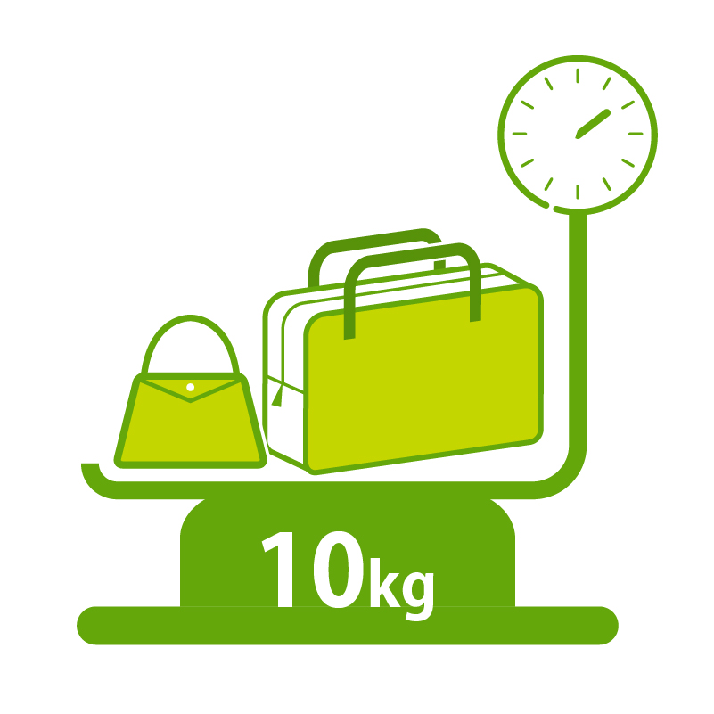 お一人様合計10kgまで (手荷物+身の回り品の総重量) |