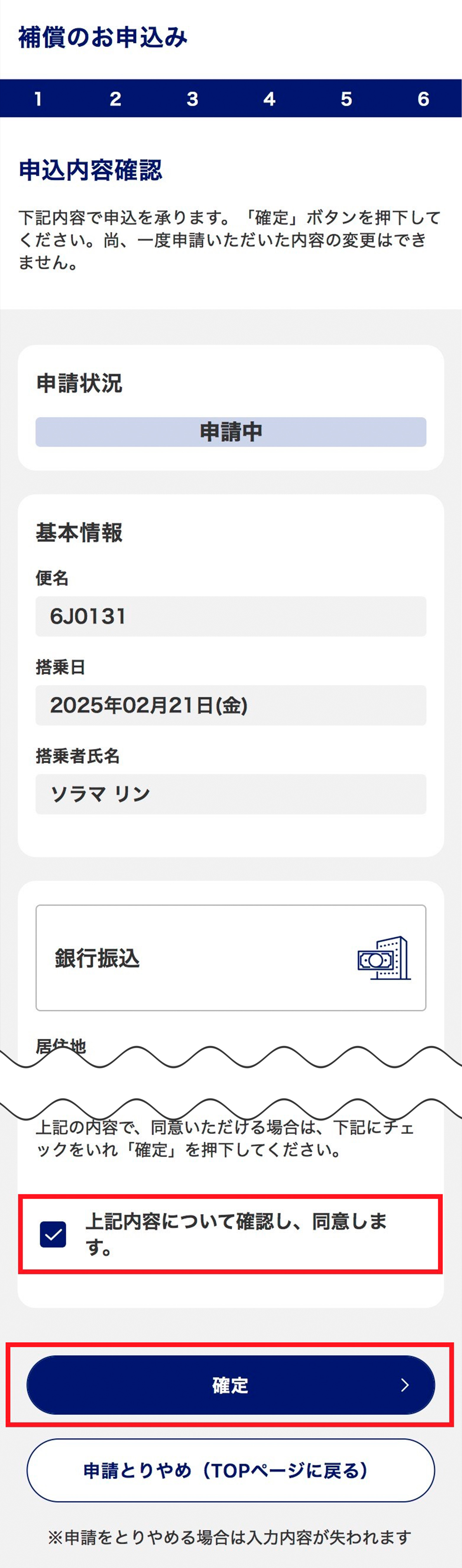 内容を確認し問題がなければページ下部の「上記内容について確認し、同意します。」のチェックボックスにチェックを入れて、「確定」を押下してください。