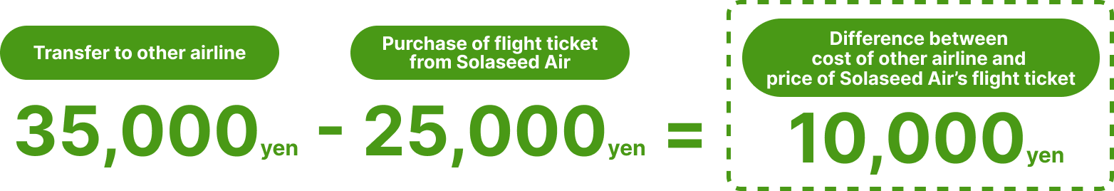 E.g., if you have purchased a flight ticket at "25,000 yen" from Solaseed Air, and then it cost "35,000 yen" to transfer to other airline or a regular ground public transportation: