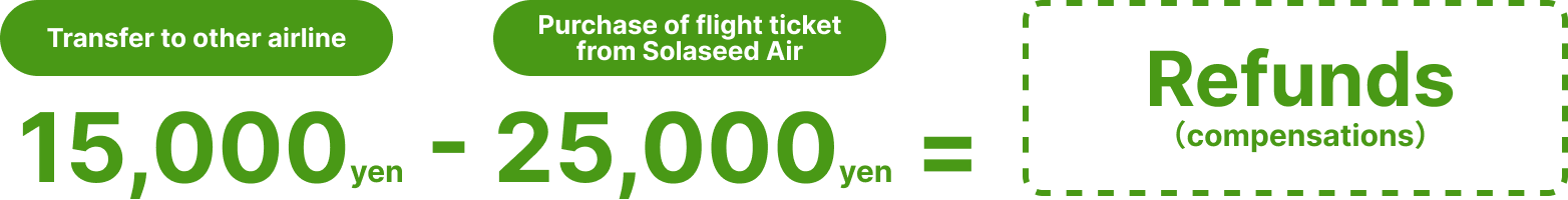 E.g., if you have purchased a flight ticket at "25,000 yen" from Solaseed Air, and then it cost "15,000 yen" to transfer to other airline or a regular ground public transportation: