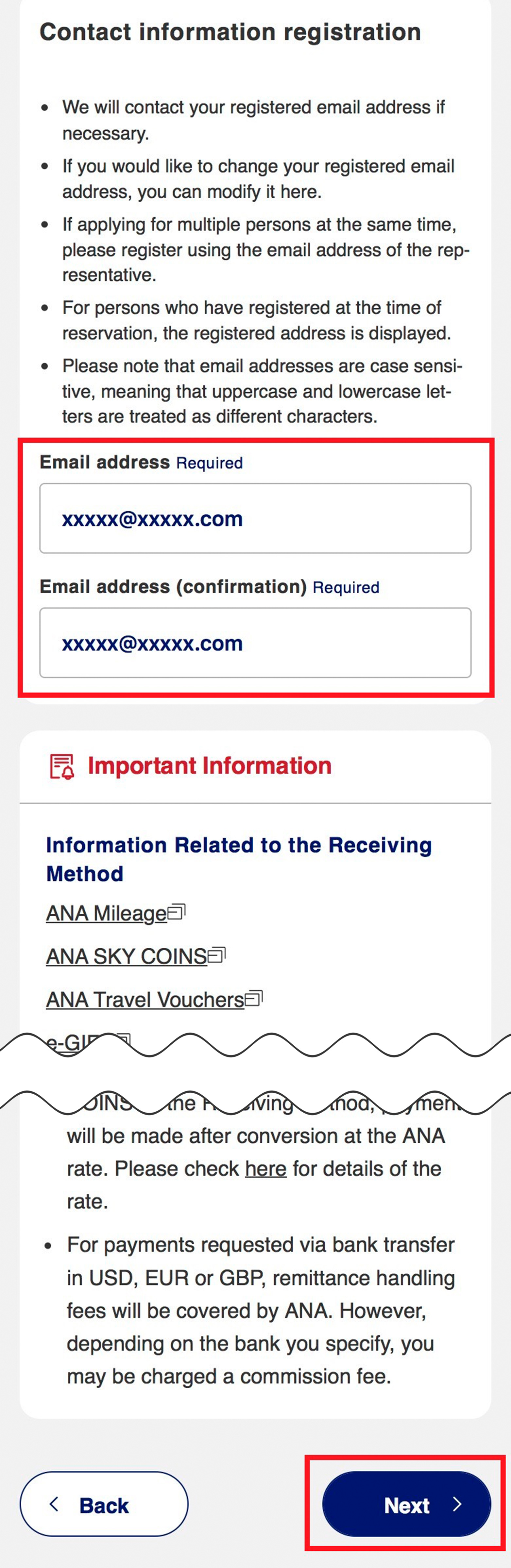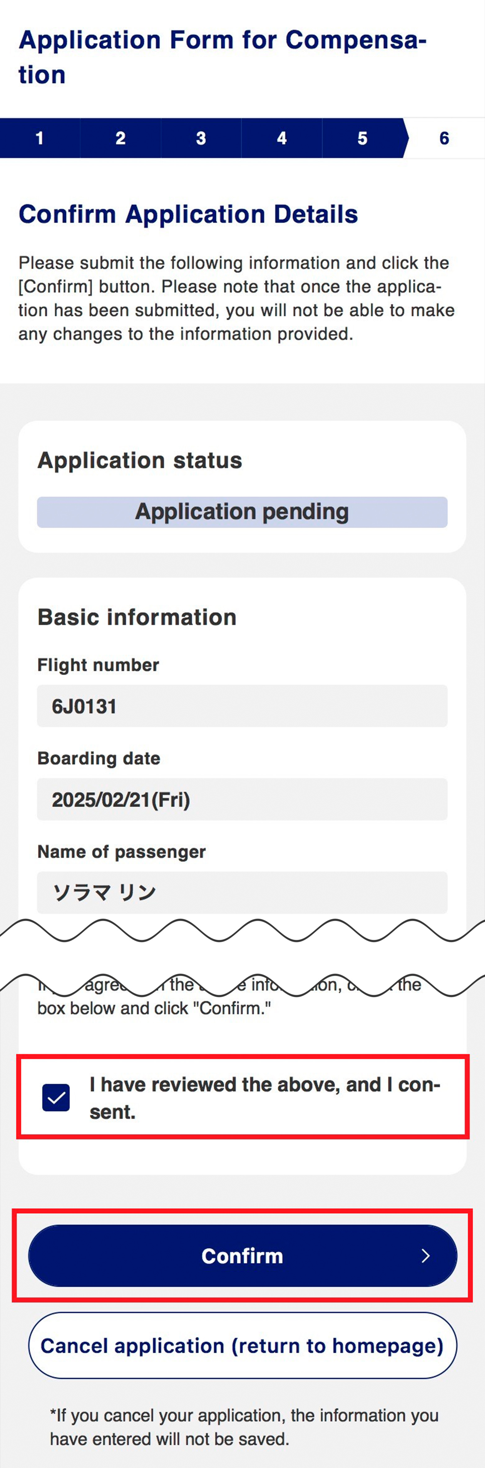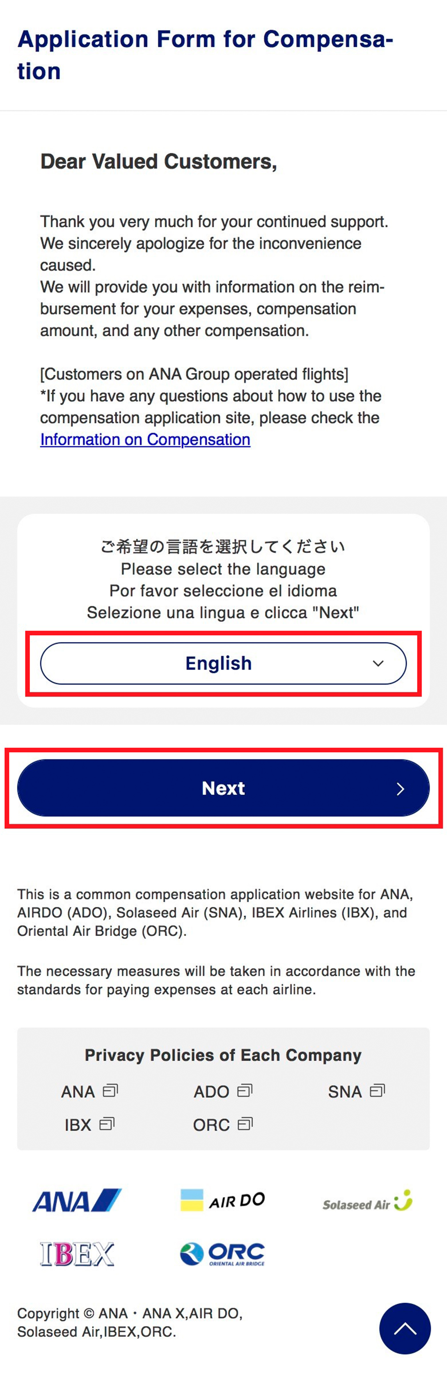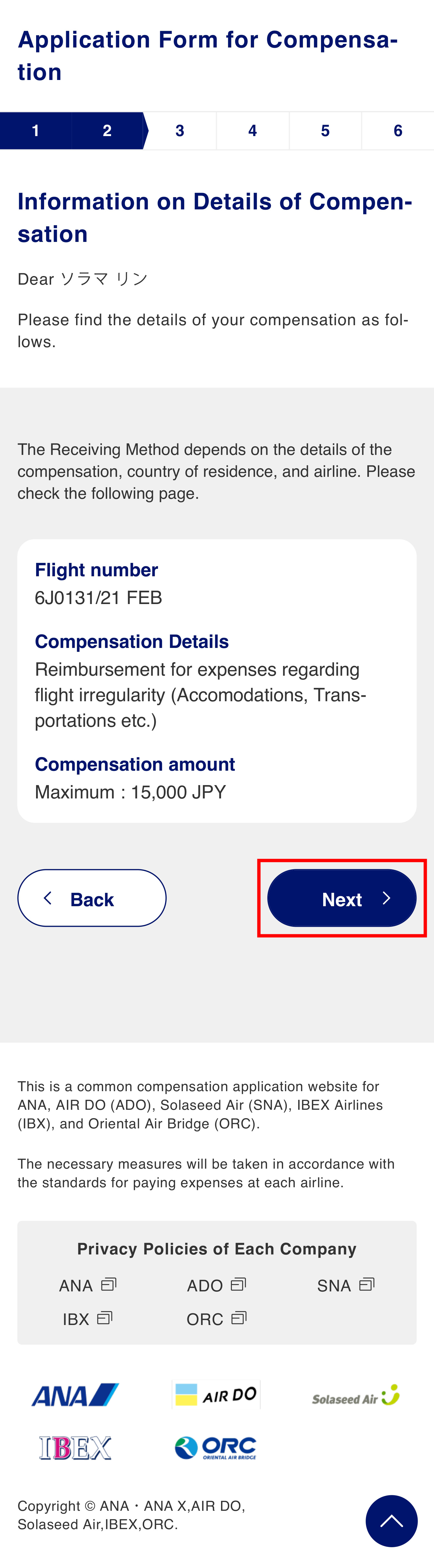*For flights operated by Solaseed Air, places of residence outside Japan are not covered. The information displayed in the Receiving Methods field shows the methods of receiving compensation that you can use. Select your preferred receiving method and then enter the information according to the displayed instructions.