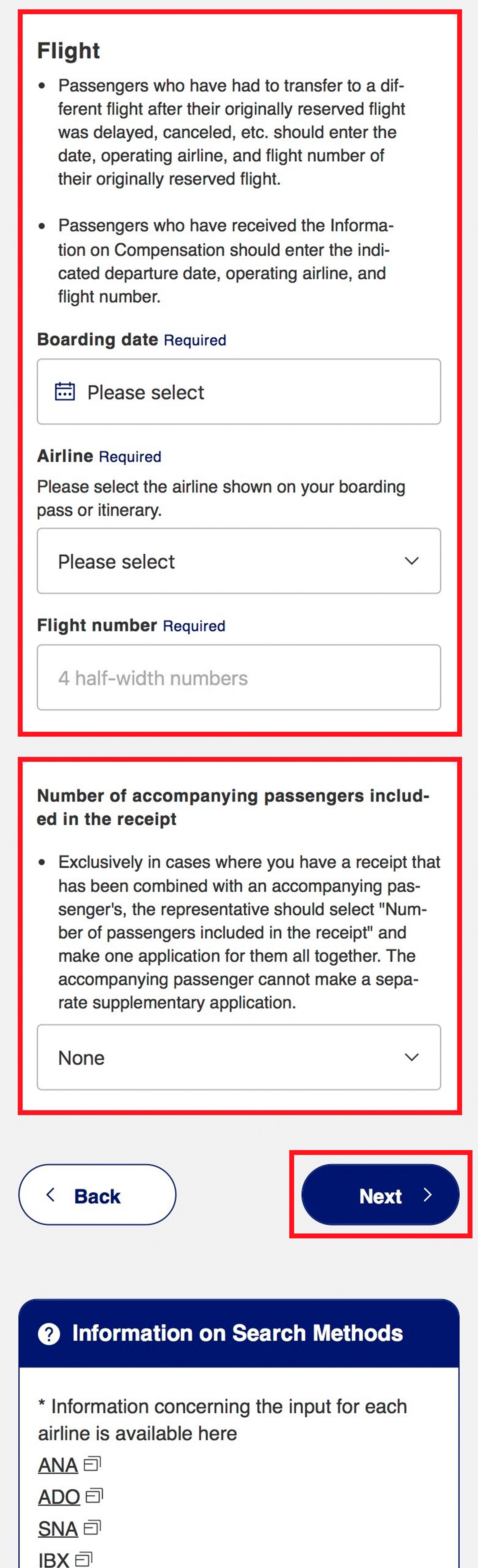 *For customers who purchased tickets from ANA (with four-digit flight numbers), please select "ANA" in the "Airline" field.