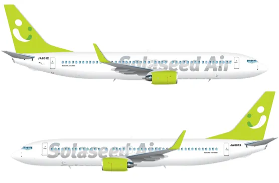 The design of the Boeing 737-800 aircraft, which began operation in July 2011 has an overall simple impression, but highlights each of the brand name, logo, and corporate color by carefully considering how to express them.