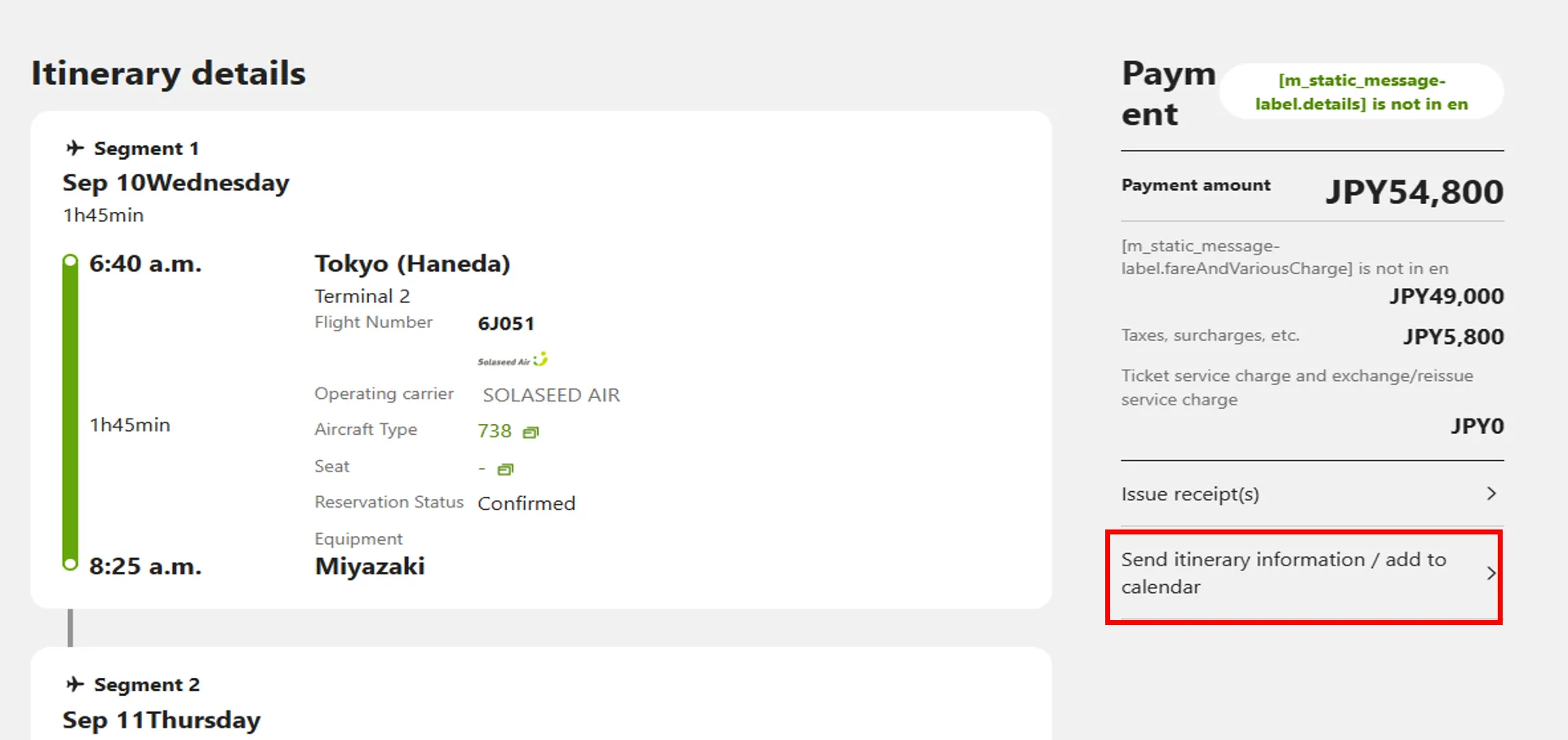URL for obtaining an e-Ticket Itinerary Receipt (receipt for confirming the reservation number and itinerary of the purchased flight ticket) will be sent to the designated email address.