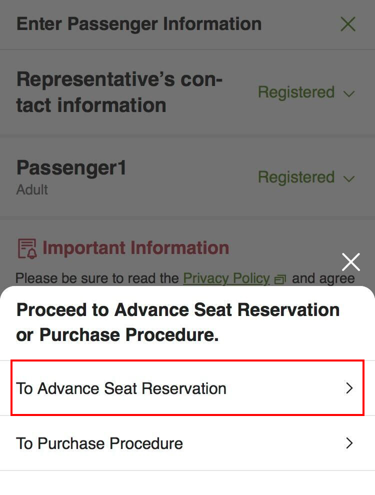 Please select "Seat Reservation" on the "Reservation Completed" or "Reservation Details" screen.
