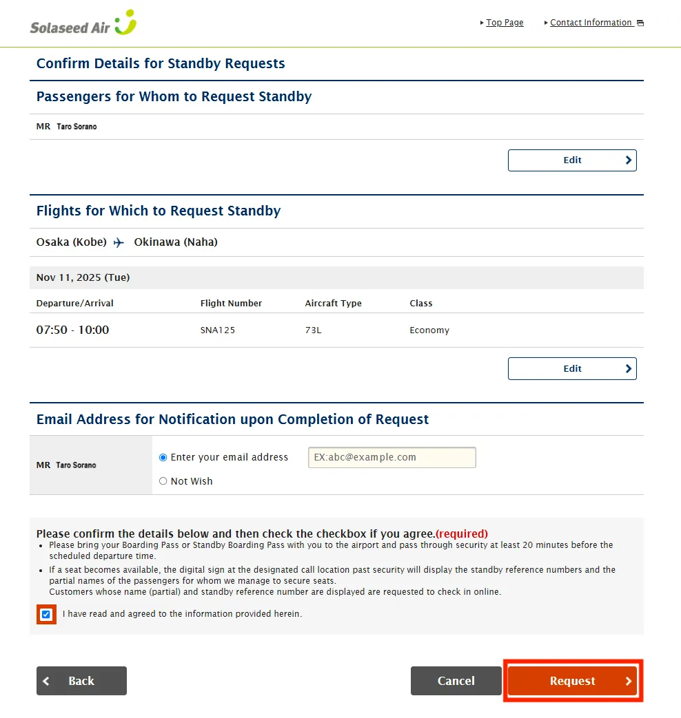 - In the information email, you will find various inquiries and the standby number that is required for confirmation when the seat becomes available.