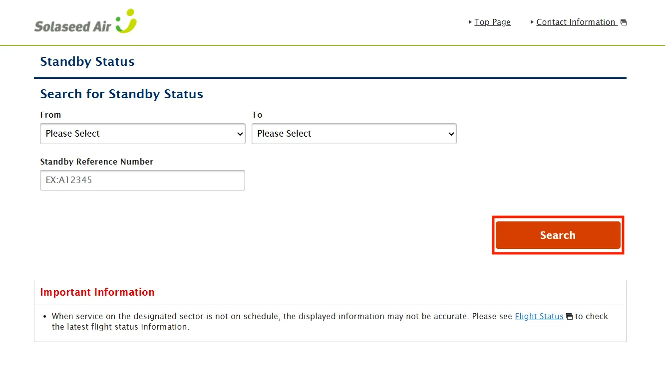 Enter the departure/arrival locations and standby number, and then click (tap) "Search".
