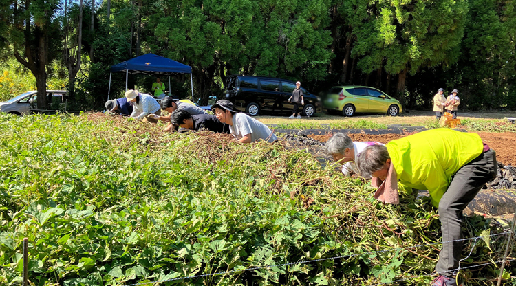 「ソラシドエコファーム」は、ソラシドエアがメインスポンサーを務める移住マッチングイベント「九州移住ドラフト会議(主催:九州地域間連携推進機構株式会社)」の過去の参加球団(地域)を対象に、就航20周年記念のコラボ企画として募集した「ソラシドエアと一緒に実現したい企画」の中で採用され、2023年5月21日に開園しました。夏のとうもろこしの初収穫に引き続き、今回は秋の味覚として親しまれている”さつまいも”を収穫しました。