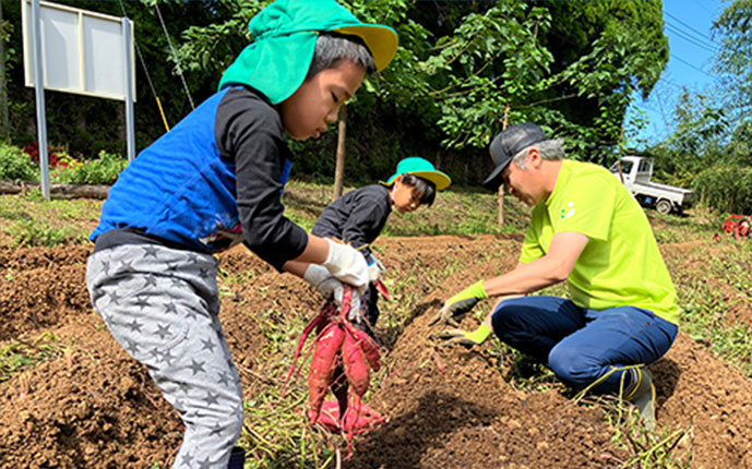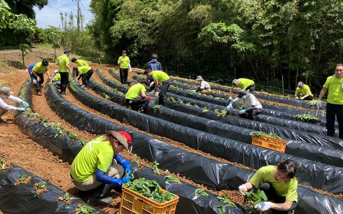 2024年5月11日(土)に、株式会社イノPとソラシドエア社員16名で行いました。約1時間半をかけ、サツマイモの品種である「紅はるか」を手作業で植え付けました。今回植えた「紅はるか」は見た目が良く、蒸すと糖度が高くとても美味しい芋としても知られています。また、甘さが強いにもかかわらず、後味はすっきりした上品な味わいを感じさせてくれる芋でもあります。