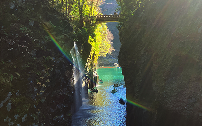 県北エリアを巡る高千穂コースと高千穂満喫コースでは、「神話の里」として知られる高千穂町で、神話の舞台と伝えられる天岩戸神社や天安河原、高千穂神社などを巡りました。