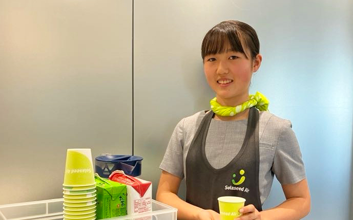 オフィスで体験を行った後は、実際に宮崎へ帰る飛行機内にて、関係者へドリンク提供を行いました。