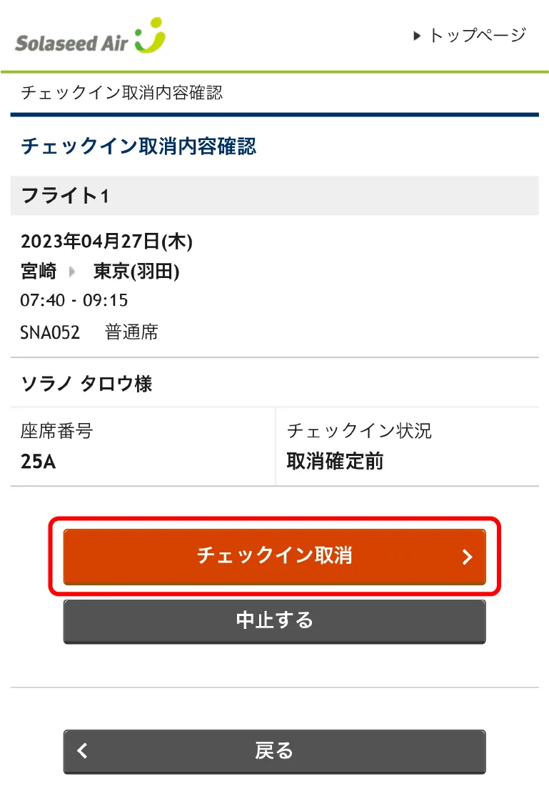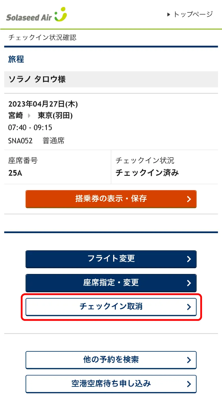 オンラインチェックインの取消方法