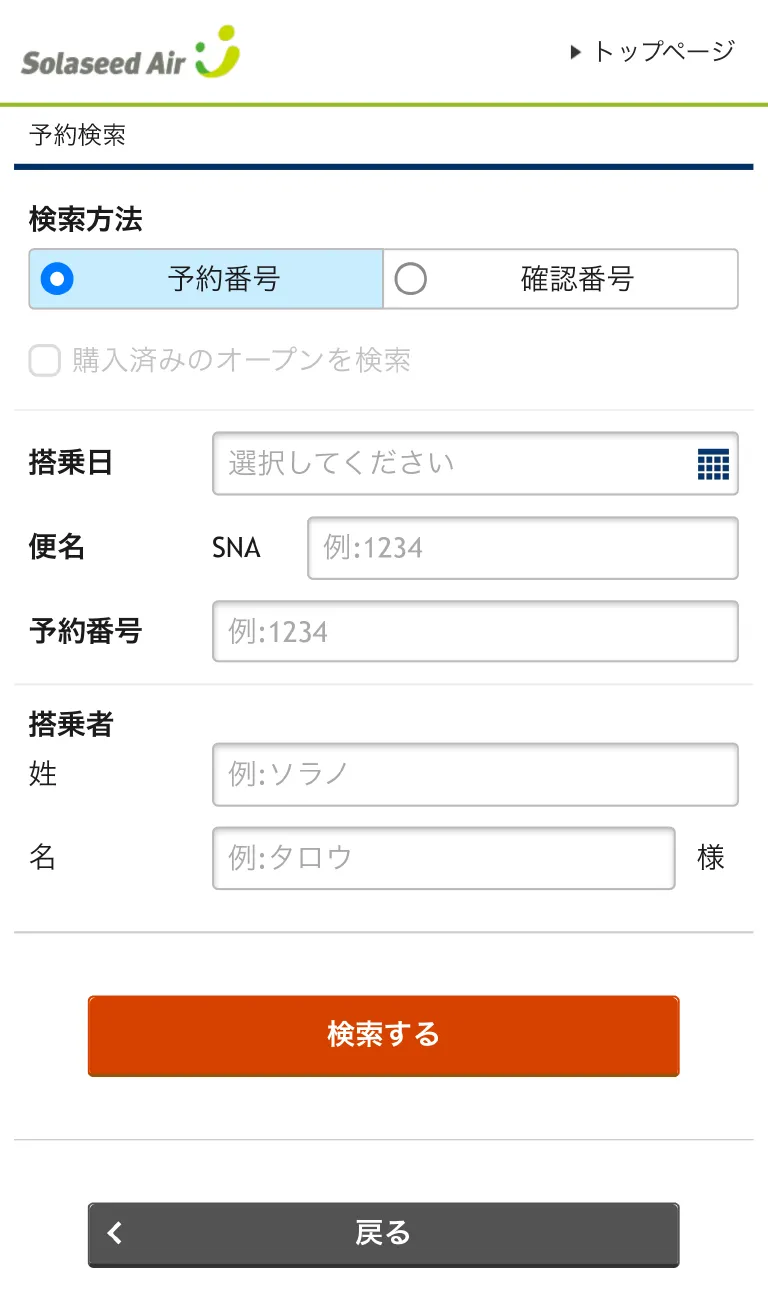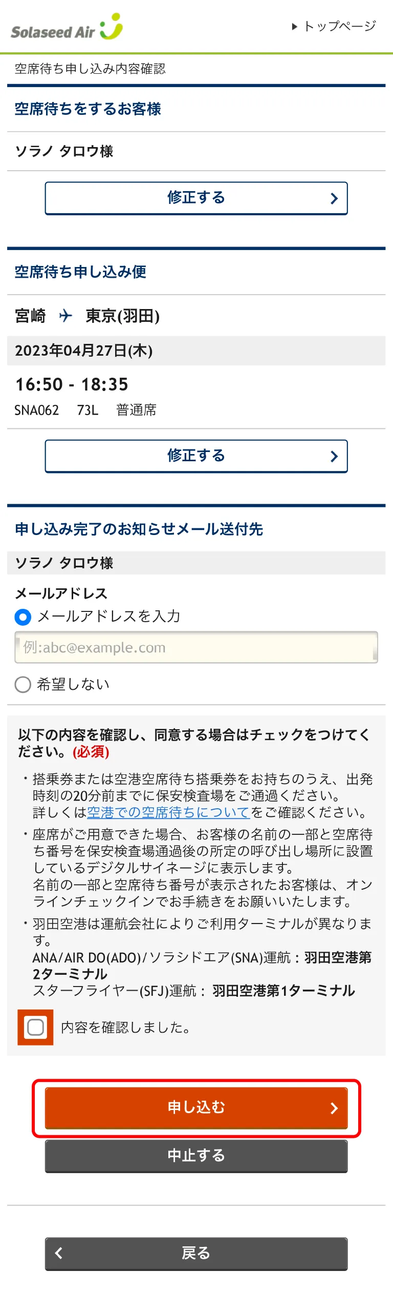 空港空席待ち申し込みの操作方法