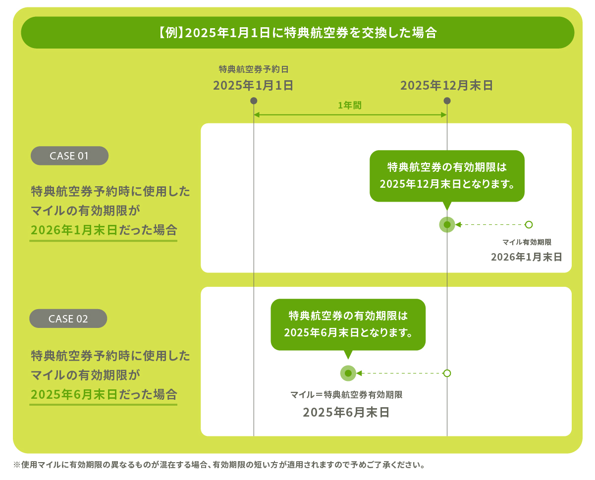 【例】2025年1月1日に特典航空券を交換した場合の説明図