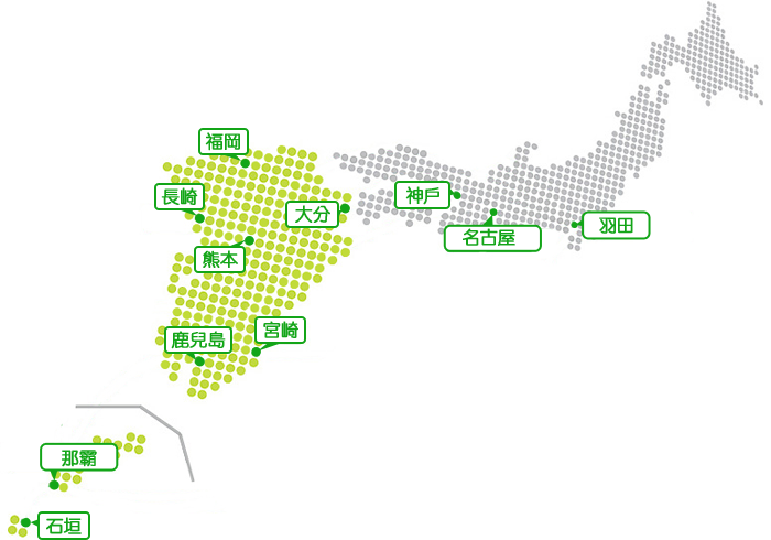 | 名古屋 (中部) - 鹿兒島 | 2 趟來回 每天 4 個航班 |
